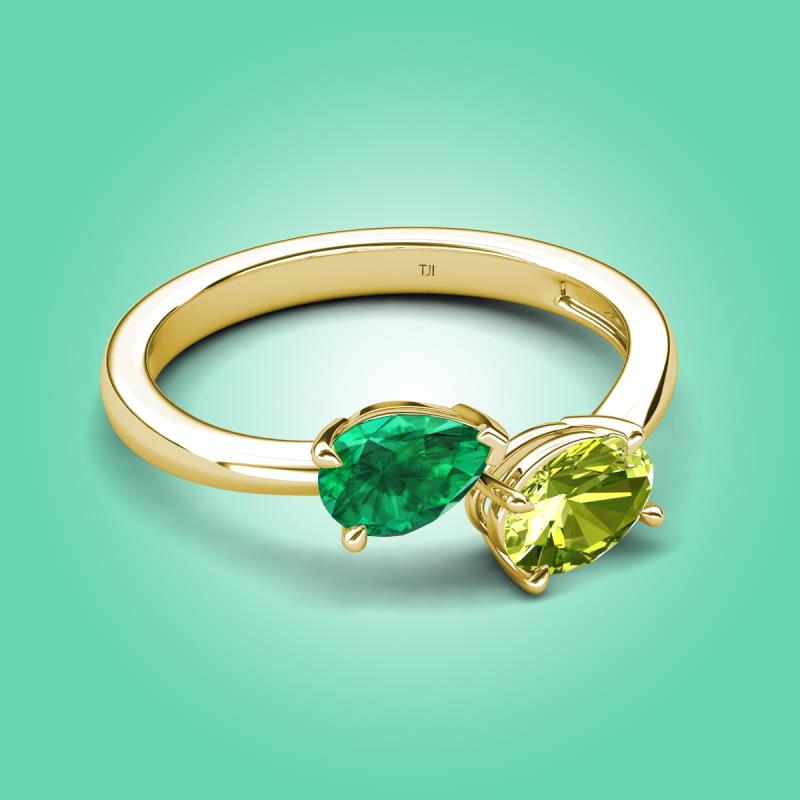 1.70 ctw Emerald Pear Shape 7x5 mm & Peridot Oval Shape 7x5 mm with Prong setting Two Stone Duo Women Engagement Ring in 14K Yellow Gold More Details ...