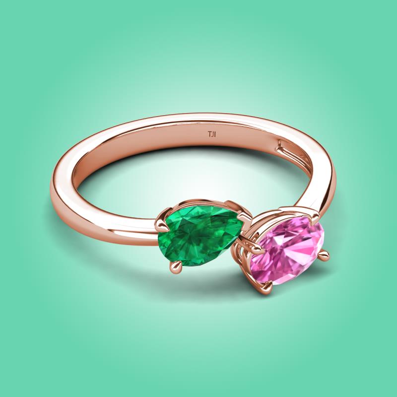 1.80 ctw Emerald Pear Shape 7x5 mm & Pink Sapphire Oval Shape 7x5 mm with Prong setting Two Stone Duo Women Engagement Ring in 14K Rose Gold More Details ...
