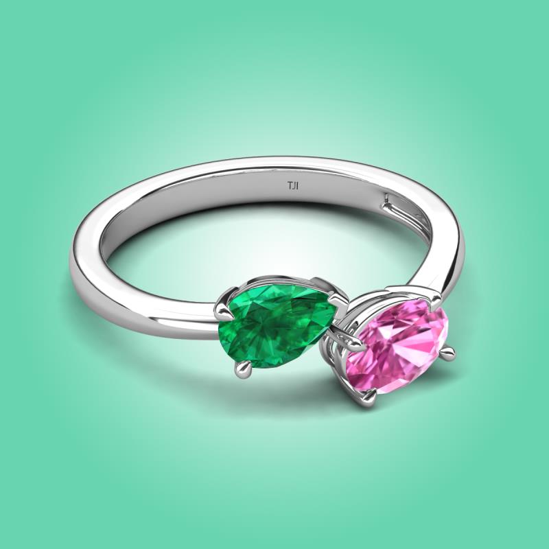 1.80 ctw Emerald Pear Shape 7x5 mm & Pink Sapphire Oval Shape 7x5 mm with Prong setting Two Stone Duo Women Engagement Ring in 18K White Gold More Details ...