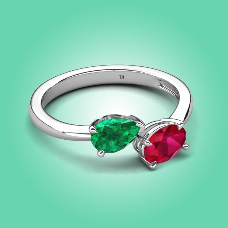 1.70 ctw Emerald Pear Shape 7x5 mm & Ruby Oval Shape 7x5 mm with Prong setting Two Stone Duo Women Engagement Ring in Sterling Silver More Details ...