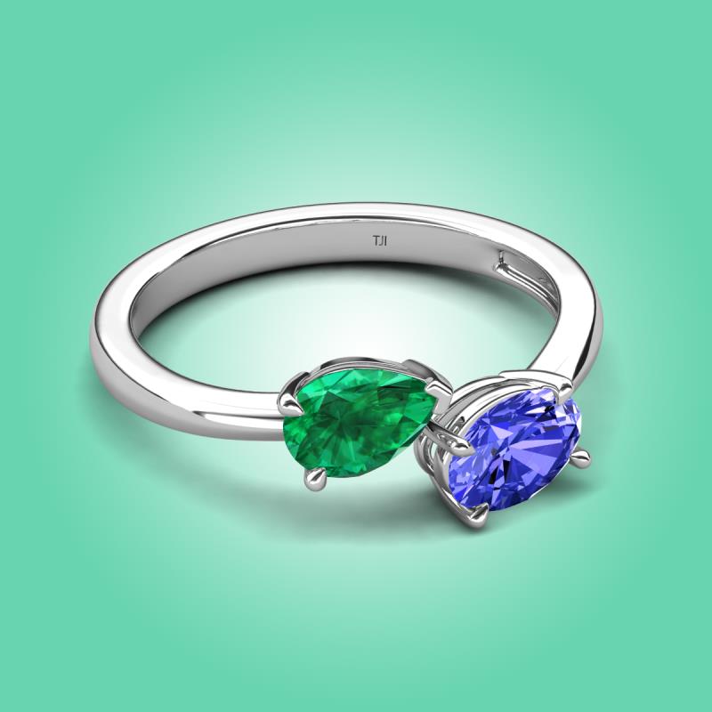 1.65 ctw Emerald Pear Shape 7x5 mm & Tanzanite Oval Shape 7x5 mm with Prong setting Two Stone Duo Women Engagement Ring in 14K White Gold More Details ...