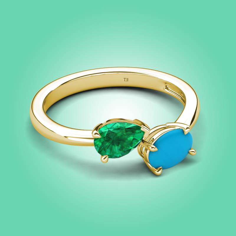1.50 ctw Emerald Pear Shape 7x5 mm & Turquoise Oval Shape 7x5 mm with Prong setting Two Stone Duo Women Engagement Ring in 18K Yellow Gold More Details ...