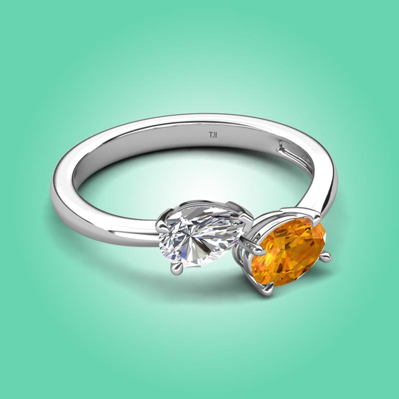 1.52 ctw GIA Certified Natural Diamond Pear Shape 7x5 mm & Citrine Oval Shape 7x5 mm with Prong setting Two Stone Duo Women Engagement Ring in Platinum More Details ...