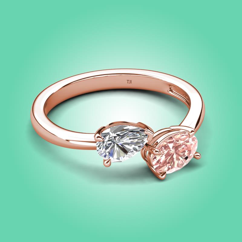 1.55 ctw GIA Certified Natural Diamond Pear Shape 7x5 mm & Morganite Oval Shape 7x5 mm with Prong setting Two Stone Duo Women Engagement Ring in 18K Rose Gold More Details ...