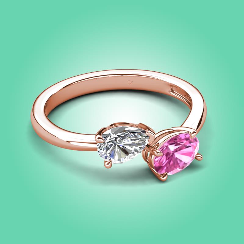 1.80 ctw GIA Certified Natural Diamond Pear Shape 7x5 mm & Pink Sapphire Oval Shape 7x5 mm with Prong setting Two Stone Duo Women Engagement Ring in 14K Rose Gold More Details ...