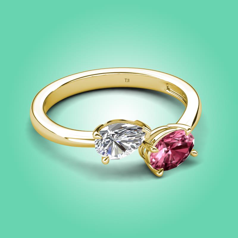 1.65 ctw GIA Certified Natural Diamond Pear Shape 7x5 mm & Pink Tourmaline Oval Shape 7x5 mm with Prong setting Two Stone Duo Women Engagement Ring in 18K Yellow Gold More Details ...