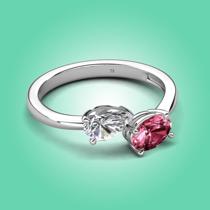 The GIA Certified Natural Diamond Pear Shape and Pink Tourmaline Oval Shape Toi Et Moi Duo Ring of 1.65 ctw is the perfect representation of your unique and everlasting bond. The pear and oval shaped gemstones set in a Prong setting, complement each other perfectly, creating a stunning and timeless design that will capture the heart of your loved one, symbolizing your eternal love and commitment that will last a lifetime.