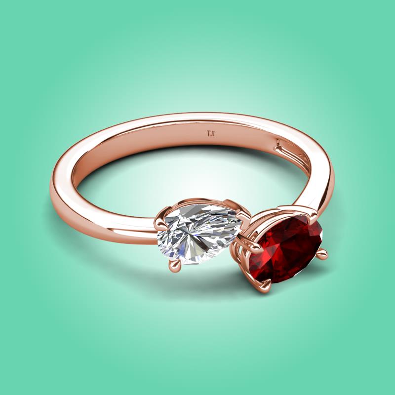 1.75 ctw GIA Certified Natural Diamond Pear Shape 7x5 mm & Red Garnet Oval Shape 7x5 mm with Prong setting Two Stone Duo Women Engagement Ring in 14K Rose Gold More Details ...
