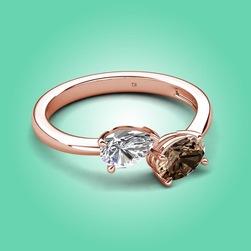 1.55 ctw GIA Certified Natural Diamond Pear Shape 7x5 mm & Smoky Quartz Oval Shape 7x5 mm with Prong setting Two Stone Duo Women Engagement Ring in 14K Rose Gold More Details ...