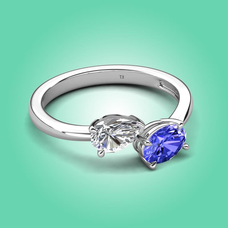 1.65 ctw GIA Certified Natural Diamond Pear Shape 7x5 mm & Tanzanite Oval Shape 7x5 mm with Prong setting Two Stone Duo Women Engagement Ring in Platinum More Details ...
