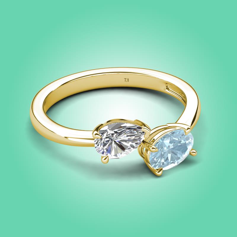 1.47 ctw IGI Certified Lab Grown Diamond Pear Shape 7x5 mm & Aquamarine Oval Shape 7x5 mm with Prong setting Two Stone Duo Women Engagement Ring in 14K Yellow Gold More Details ...