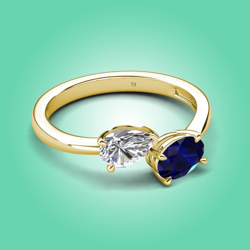 1.65 ctw IGI Certified Lab Grown Diamond Pear Shape 7x5 mm & Blue Sapphire Oval Shape 7x5 mm with Prong setting Two Stone Duo Women Engagement Ring in 10K Yellow Gold More Details ...