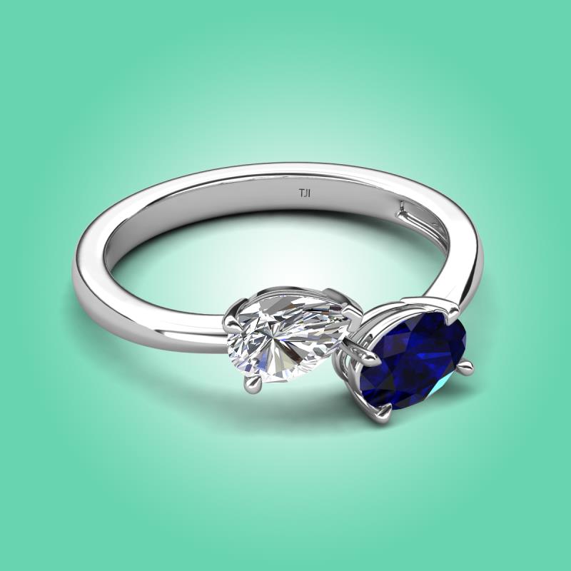 1.65 ctw IGI Certified Lab Grown Diamond Pear Shape 7x5 mm & Blue Sapphire Oval Shape 7x5 mm with Prong setting Two Stone Duo Women Engagement Ring in 18K White Gold More Details ...