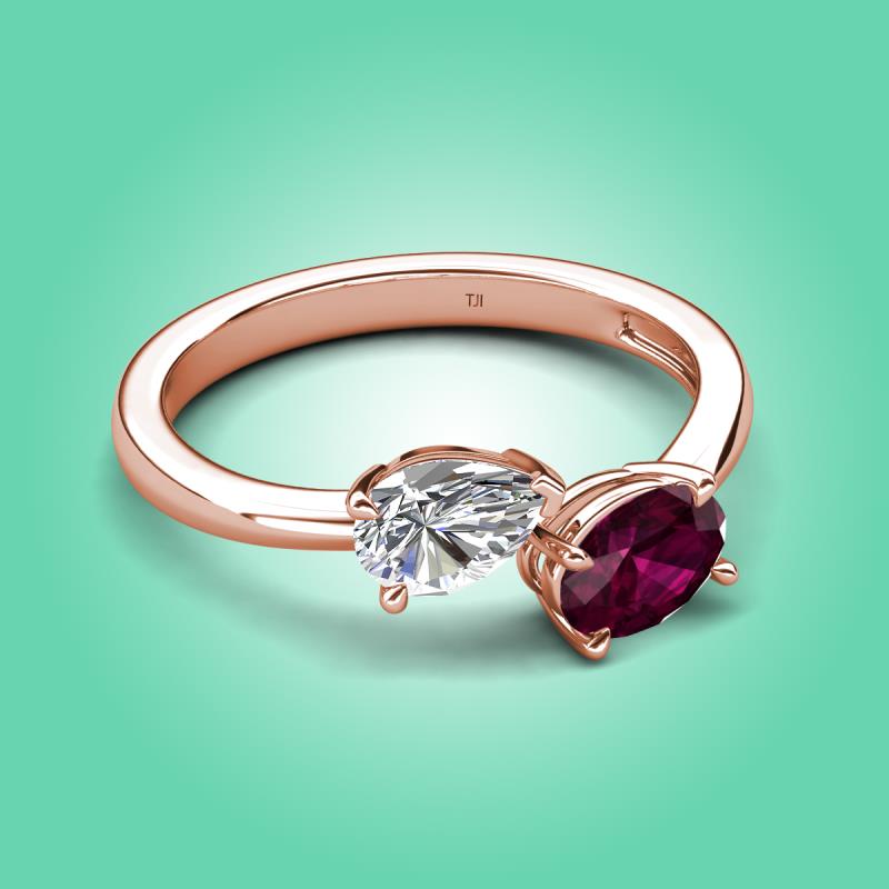 1.75 ctw IGI Certified Lab Grown Diamond Pear Shape 7x5 mm & Rhodolite Garnet Oval Shape 7x5 mm with Prong setting Two Stone Duo Women Engagement Ring in 10K Rose Gold More Details ...