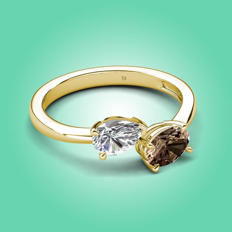 1.50 ctw IGI Certified Lab Grown Diamond Pear Shape 7x5 mm & Smoky Quartz Oval Shape 7x5 mm with Prong setting Two Stone Duo Women Engagement Ring in 10K Yellow Gold More Details ...