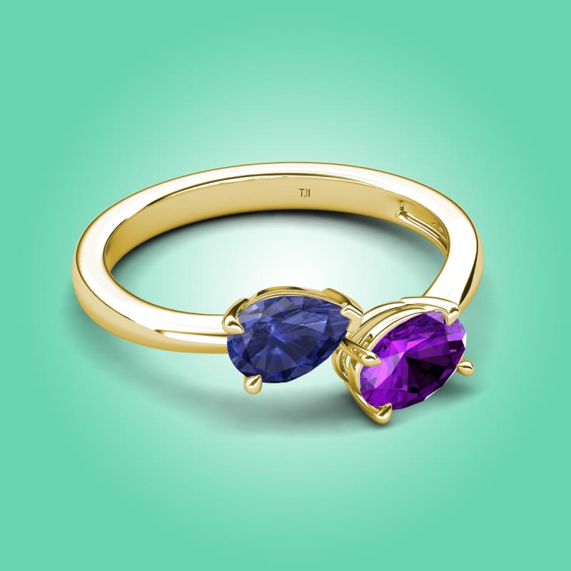 1.32 ctw Iolite Pear Shape 7x5 mm & Amethyst Oval Shape 7x5 mm with Prong setting Two Stone Duo Women Engagement Ring in 18K Yellow Gold More Details ...
