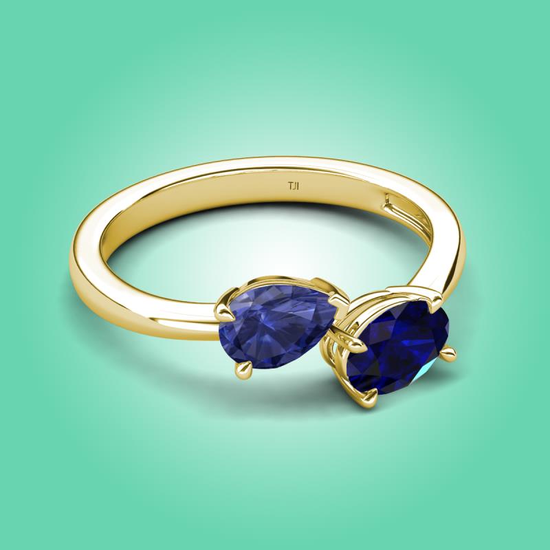 1.50 ctw Iolite Pear Shape 7x5 mm & Blue Sapphire Oval Shape 7x5 mm with Prong setting Two Stone Duo Women Engagement Ring in 18K Yellow Gold More Details ...
