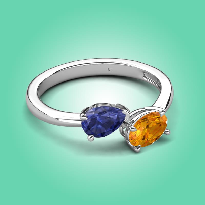 1.32 ctw Iolite Pear Shape 7x5 mm & Citrine Oval Shape 7x5 mm with Prong setting Two Stone Duo Women Engagement Ring in 14K White Gold More Details ...