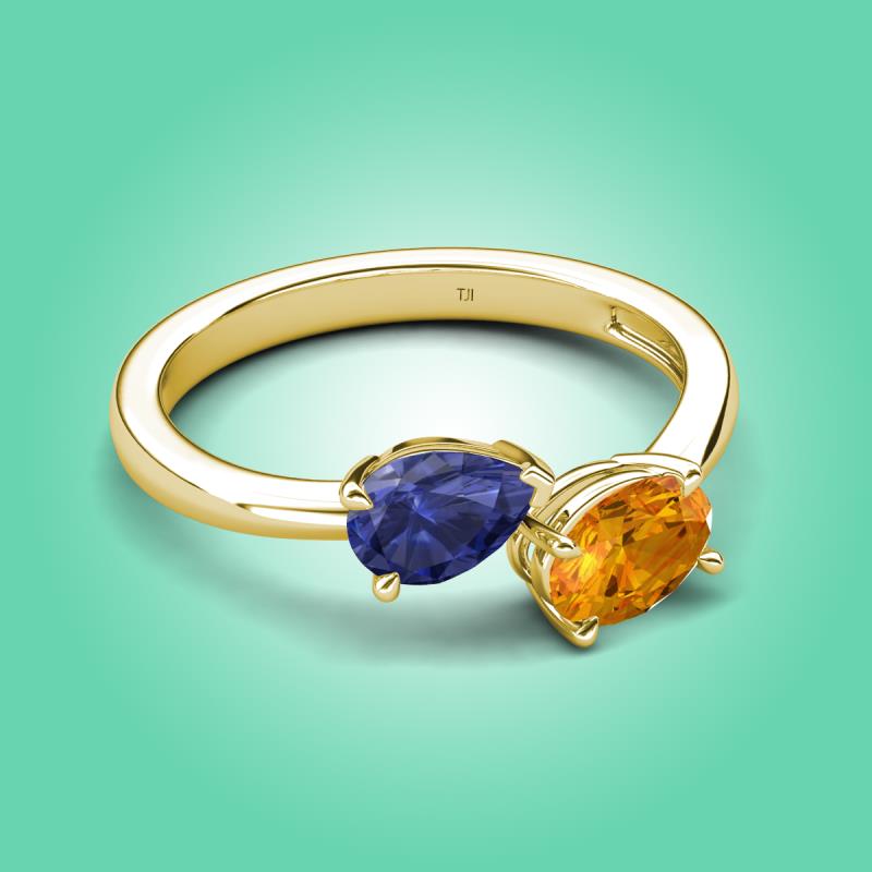 1.32 ctw Iolite Pear Shape 7x5 mm & Citrine Oval Shape 7x5 mm with Prong setting Two Stone Duo Women Engagement Ring in 14K Yellow Gold More Details ...