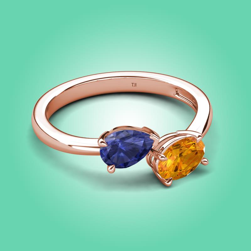 1.32 ctw Iolite Pear Shape 7x5 mm & Citrine Oval Shape 7x5 mm with Prong setting Two Stone Duo Women Engagement Ring in 18K Rose Gold More Details ...