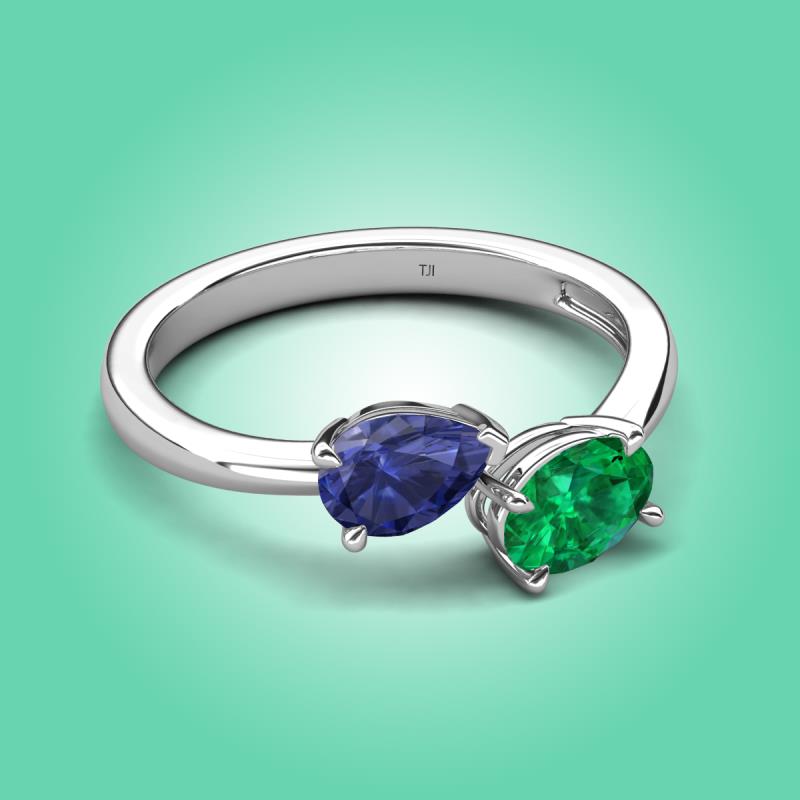 1.40 ctw Iolite Pear Shape 7x5 mm & Emerald Oval Shape 7x5 mm with Prong setting Two Stone Duo Women Engagement Ring in 14K White Gold More Details ...