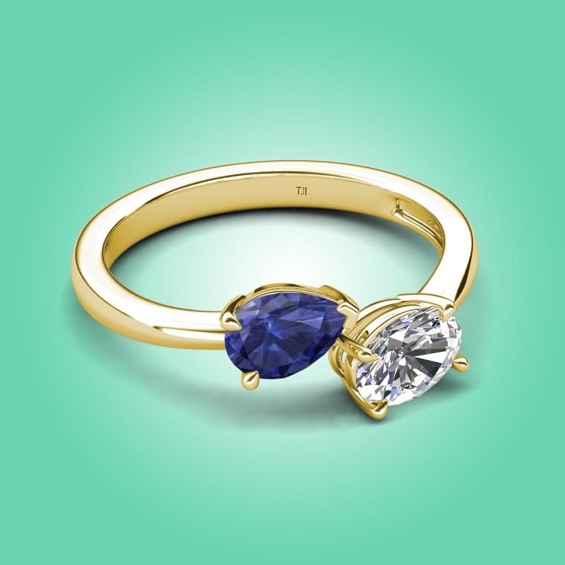 1.40 ctw Iolite Pear Shape 7x5 mm & IGI Certified Lab Grown Diamond Oval Shape 7x5 mm with Prong setting Two Stone Duo Women Engagement Ring in 14K Yellow Gold More Details ...