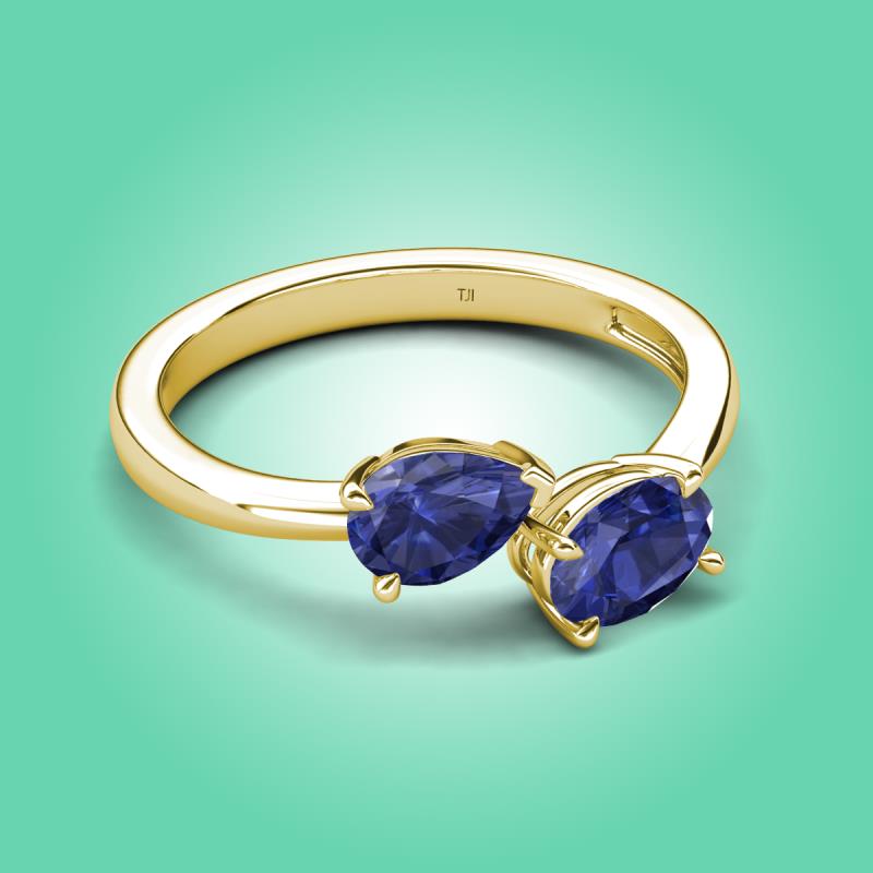 1.27 ctw Iolite Pear Shape 7x5 mm & Iolite Oval Shape 7x5 mm with Prong setting Two Stone Duo Women Engagement Ring in 10K Yellow Gold More Details ...