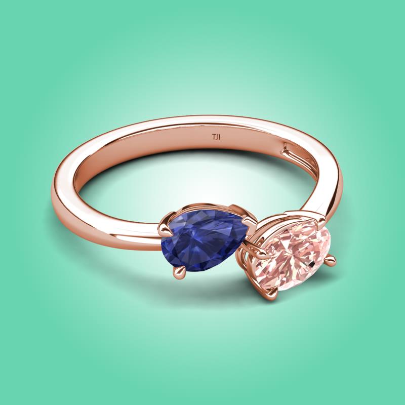 1.35 ctw Iolite Pear Shape 7x5 mm & Morganite Oval Shape 7x5 mm with Prong setting Two Stone Duo Women Engagement Ring in 18K Rose Gold More Details ...