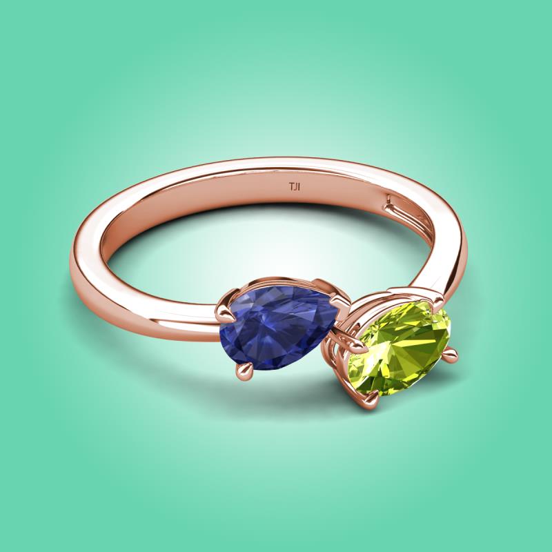 1.50 ctw Iolite Pear Shape 7x5 mm & Peridot Oval Shape 7x5 mm with Prong setting Two Stone Duo Women Engagement Ring in 18K Rose Gold More Details ...