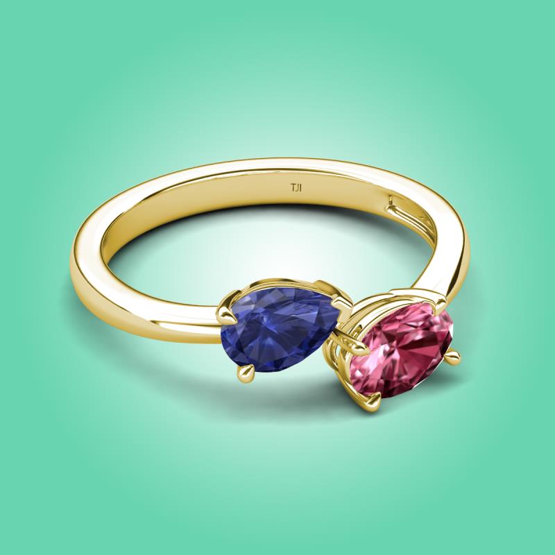1.45 ctw Iolite Pear Shape 7x5 mm & Pink Tourmaline Oval Shape 7x5 mm with Prong setting Two Stone Duo Women Engagement Ring in 14K Yellow Gold More Details ...
