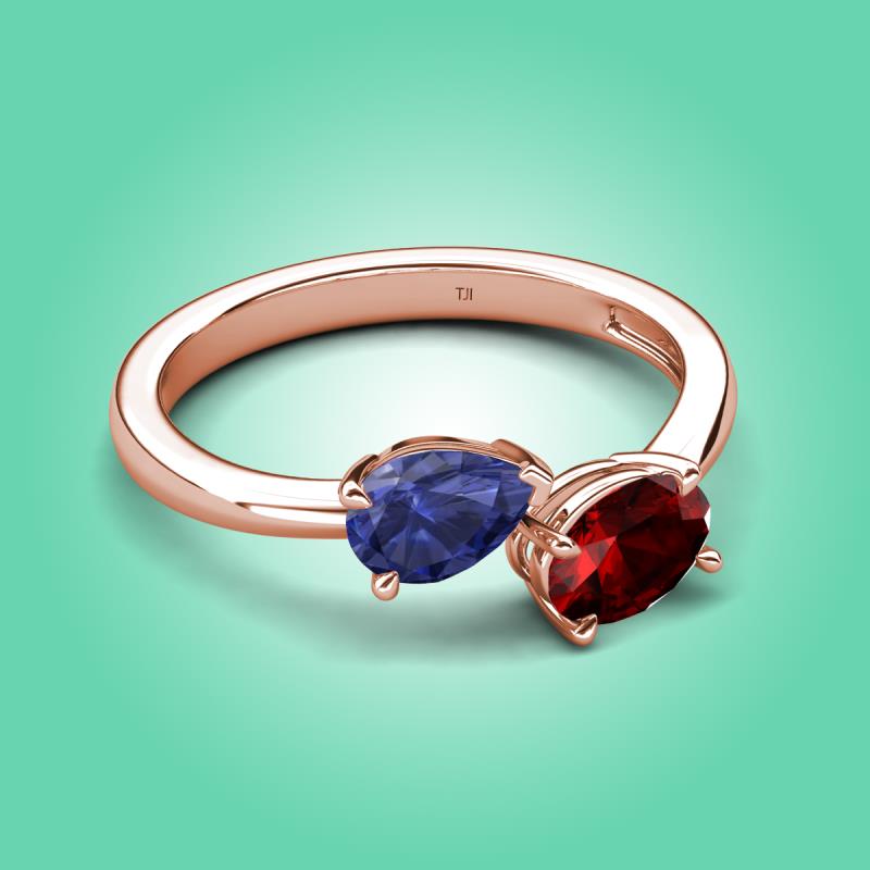 1.55 ctw Iolite Pear Shape 7x5 mm & Red Garnet Oval Shape 7x5 mm with Prong setting Two Stone Duo Women Engagement Ring in 14K Rose Gold More Details ...