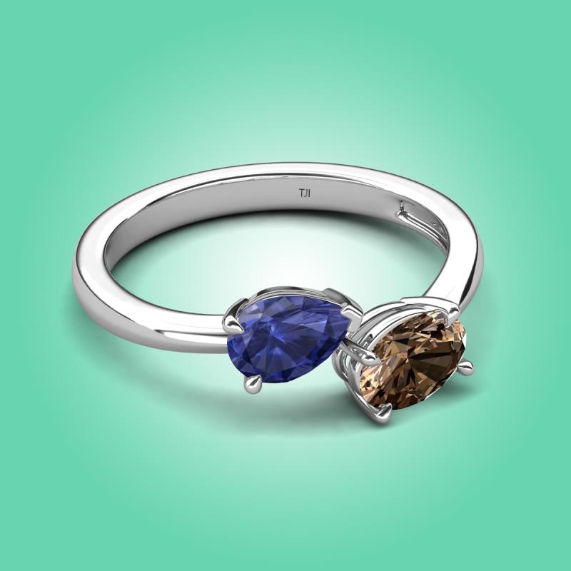 1.35 ctw Iolite Pear Shape 7x5 mm & Smoky Quartz Oval Shape 7x5 mm with Prong setting Two Stone Duo Women Engagement Ring in 18K White Gold More Details ...