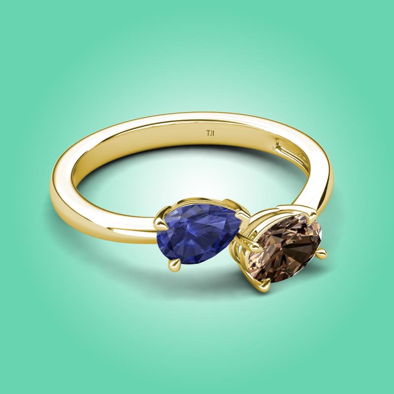 1.35 ctw Iolite Pear Shape 7x5 mm & Smoky Quartz Oval Shape 7x5 mm with Prong setting Two Stone Duo Women Engagement Ring in 18K Yellow Gold More Details ...