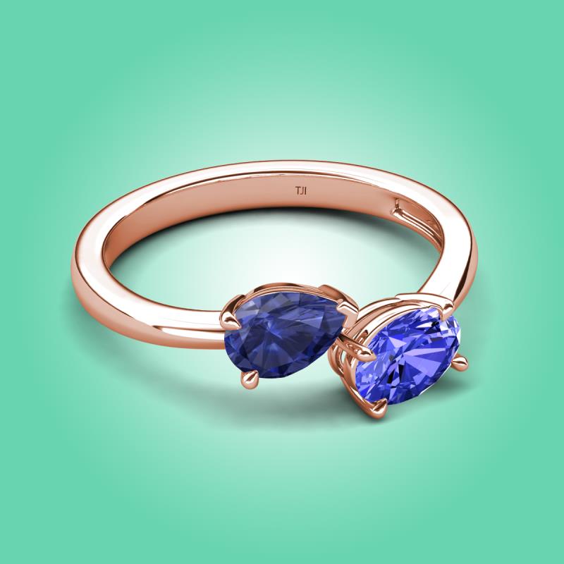 1.45 ctw Iolite Pear Shape 7x5 mm & Tanzanite Oval Shape 7x5 mm with Prong setting Two Stone Duo Women Engagement Ring in 14K Rose Gold More Details ...
