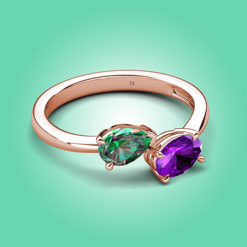 1.58 ctw Lab Created Alexandrite Pear Shape 7x5 mm & Amethyst Oval Shape 7x5 mm with Prong setting Two Stone Duo Women Engagement Ring in 14K Rose Gold More Details ...