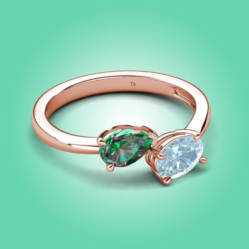 The Lab Created Alexandrite Pear Shape and Aquamarine Oval Shape Toi Et Moi Duo Ring of 1.58 ctw is the perfect representation of your unique and everlasting bond. The pear and oval shaped gemstones set in a Prong setting, complement each other perfectly, creating a stunning and timeless design that will capture the heart of your loved one, symbolizing your eternal love and commitment that will last a lifetime.