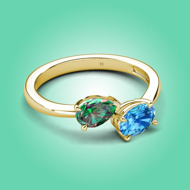 • 1 Lab Created Alexandrite Pear Shape 0.86 ctw /7x5 mm and Blue Topaz 1 Oval Shape 1.00 ctw /7x5 mm Two Stone Duo Engagement Ring set in a Prong Setting.