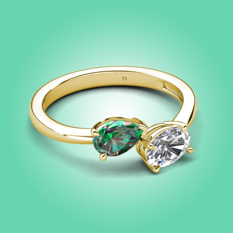 1.66 ctw Lab Created Alexandrite Pear Shape 7x5 mm & IGI Certified Lab Grown Diamond Oval Shape 7x5 mm with Prong setting Two Stone Duo Women Engagement Ring in 10K Yellow Gold More Details ...
