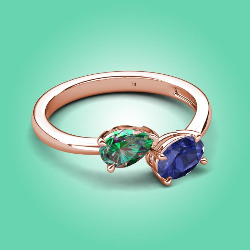 • 1 Lab Created Alexandrite Pear Shape 0.86 ctw /7x5 mm and Iolite 1 Oval Shape 0.67 ctw /7x5 mm Two Stone Duo Engagement Ring set in a Prong Setting.