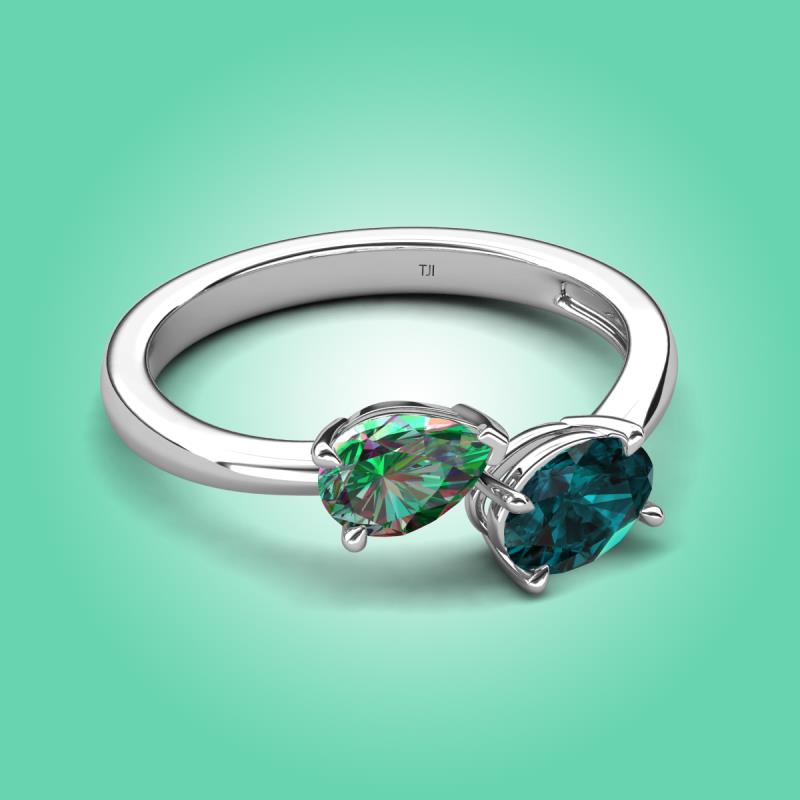 1.86 ctw Lab Created Alexandrite Pear Shape 7x5 mm & London Blue Topaz Oval Shape 7x5 mm with Prong setting Two Stone Duo Women Engagement Ring in @PrimaryMet More Details ...