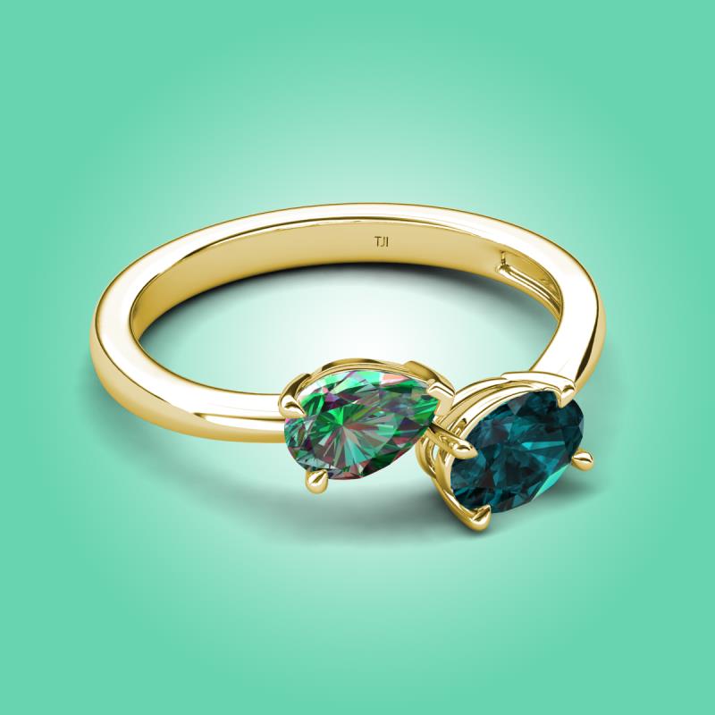 1.86 ctw Lab Created Alexandrite Pear Shape 7x5 mm & London Blue Topaz Oval Shape 7x5 mm with Prong setting Two Stone Duo Women Engagement Ring in @PrimaryMet More Details ...