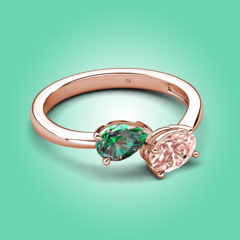 1.61 ctw Lab Created Alexandrite Pear Shape 7x5 mm & Morganite Oval Shape 7x5 mm with Prong setting Two Stone Duo Women Engagement Ring in 18K Rose Gold More Details ...