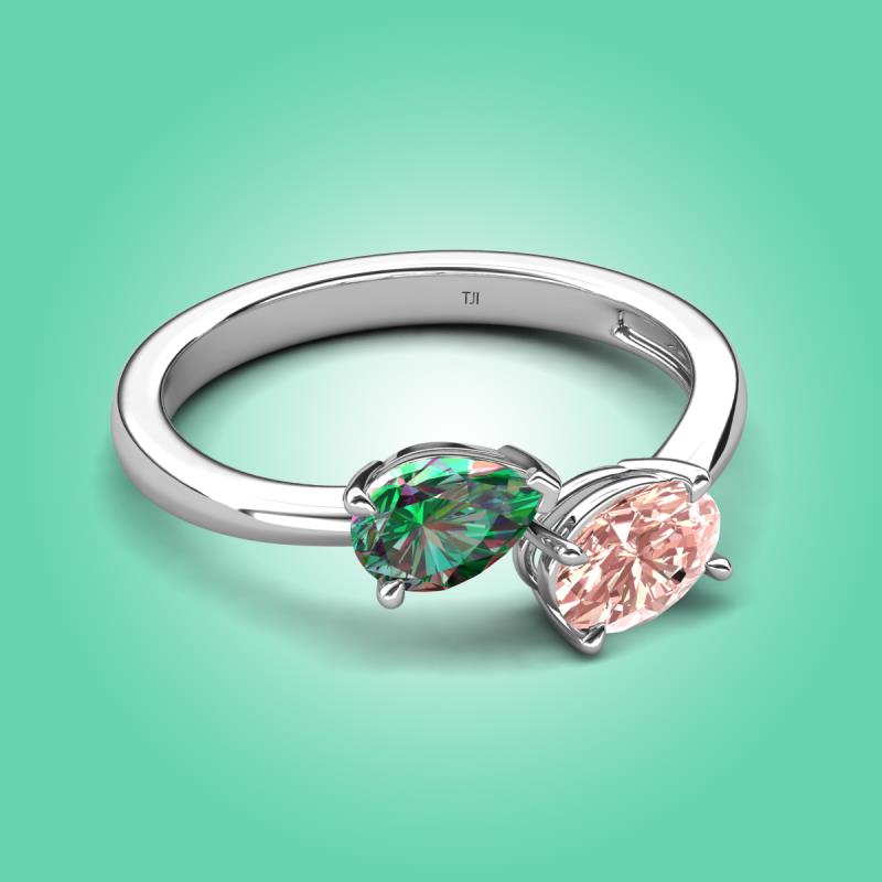 1.61 ctw Lab Created Alexandrite Pear Shape 7x5 mm & Morganite Oval Shape 7x5 mm with Prong setting Two Stone Duo Women Engagement Ring in 18K White Gold More Details ...
