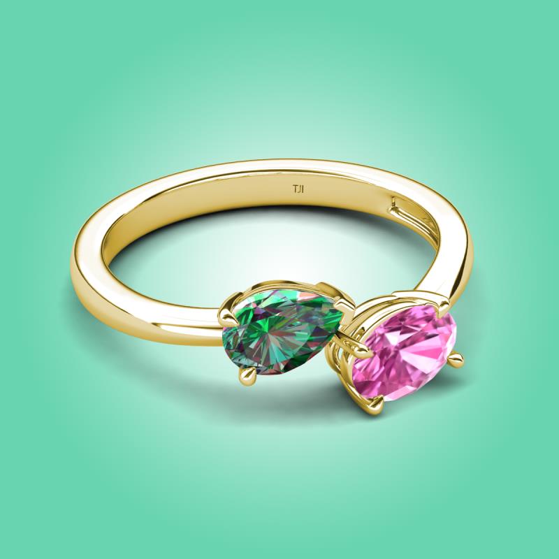 1.86 ctw Lab Created Alexandrite Pear Shape 7x5 mm & Pink Sapphire Oval Shape 7x5 mm with Prong setting Two Stone Duo Women Engagement Ring in @PrimaryMet More Details ...