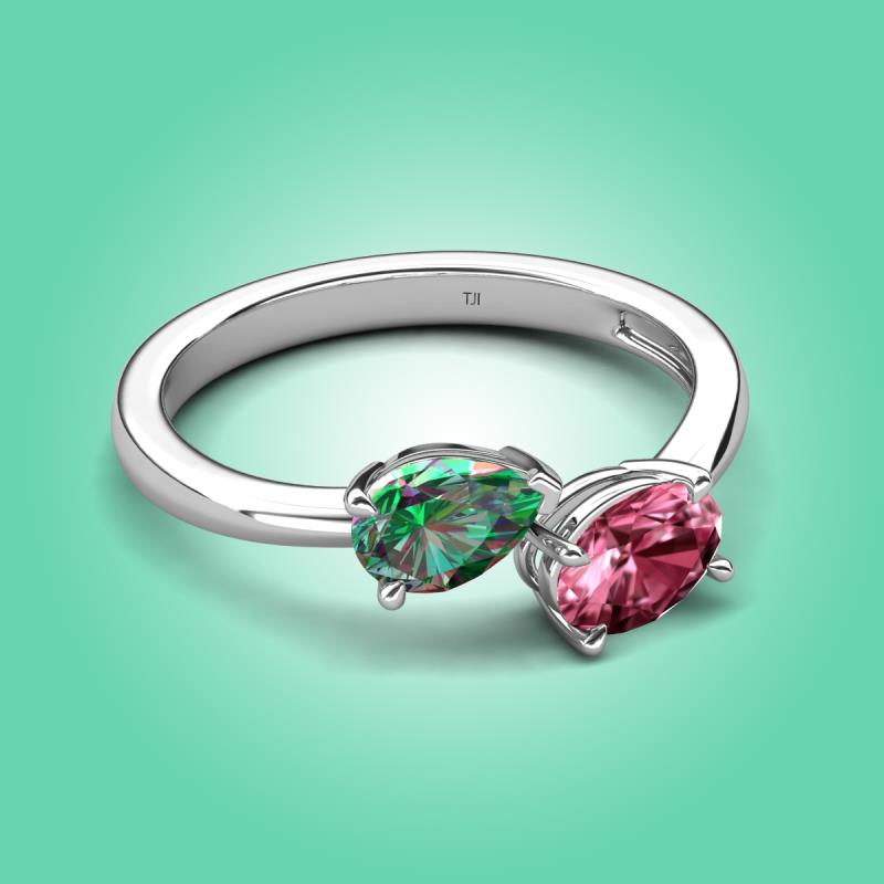 1.71 ctw Lab Created Alexandrite Pear Shape 7x5 mm & Pink Tourmaline Oval Shape 7x5 mm with Prong setting Two Stone Duo Women Engagement Ring in @PrimaryMet More Details ...