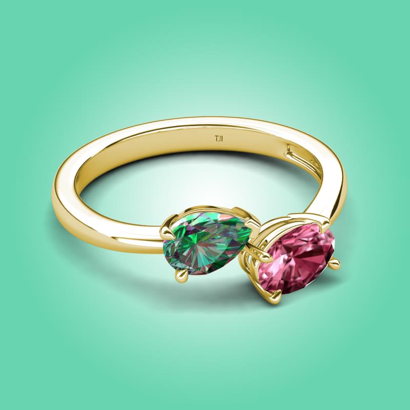 1.71 ctw Lab Created Alexandrite Pear Shape 7x5 mm & Pink Tourmaline Oval Shape 7x5 mm with Prong setting Two Stone Duo Women Engagement Ring in @PrimaryMet More Details ...