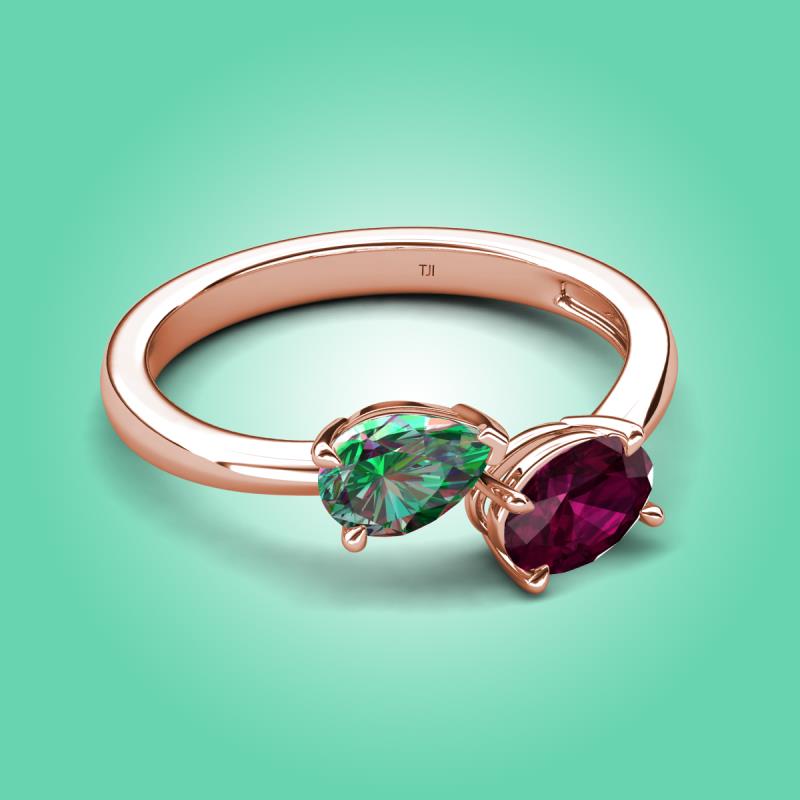 1.86 ctw Lab Created Alexandrite Pear Shape 7x5 mm & Rhodolite Garnet Oval Shape 7x5 mm with Prong setting Two Stone Duo Women Engagement Ring in @PrimaryMet More Details ...