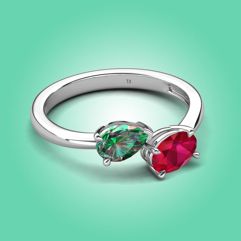1.76 ctw Lab Created Alexandrite Pear Shape 7x5 mm & Ruby Oval Shape 7x5 mm with Prong setting Two Stone Duo Women Engagement Ring in Sterling Silver More Details ...