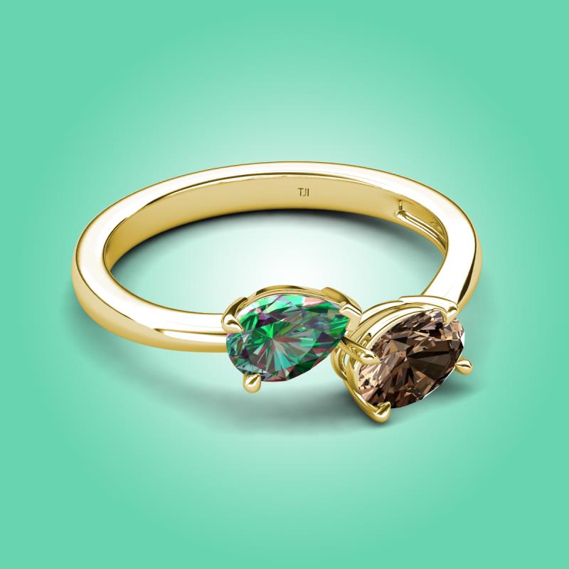 1.61 ctw Lab Created Alexandrite Pear Shape 7x5 mm & Smoky Quartz Oval Shape 7x5 mm with Prong setting Two Stone Duo Women Engagement Ring in @PrimaryMet More Details ...