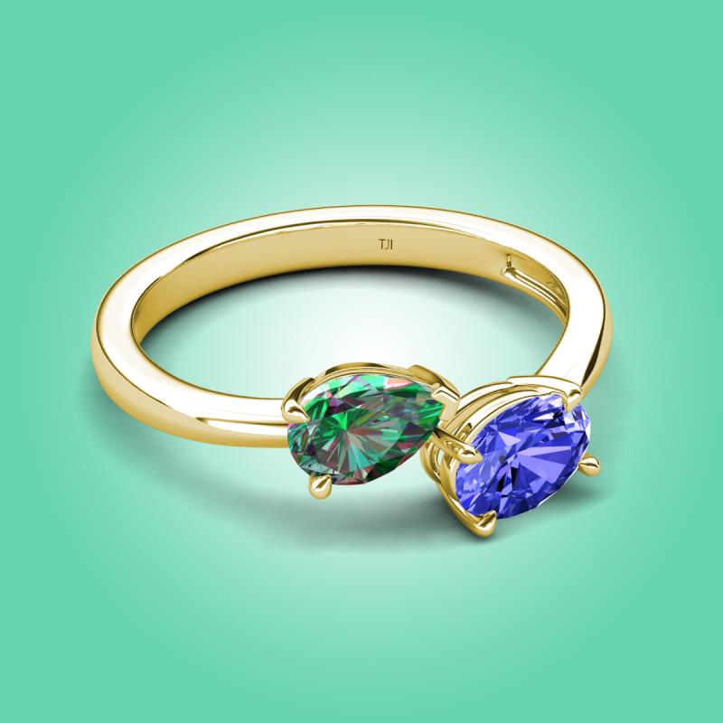 The Lab Created Alexandrite Pear Shape and Tanzanite Oval Shape Toi Et Moi Duo Ring of 1.71 ctw is the perfect representation of your unique and everlasting bond. The pear and oval shaped gemstones set in a Prong setting, complement each other perfectly, creating a stunning and timeless design that will capture the heart of your loved one, symbolizing your eternal love and commitment that will last a lifetime.